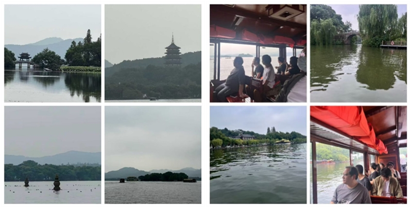 Under the guidance of the tour guide, we boarded a cruise ship. The oars 划 gently, stirring up layers of ripples on the lake, and the scenery along the way unfolded slowly: we saw the famous Louwailou Restaurant, passed by the quiet tomb of Su Xiaoxiao (a famous courtesan in the Southern Qi Dynasty), went by the ancient Broken Bridge, encountered the winding Su Causeway and Bai Causeway, looked into the distance at the towering Leifeng Pagoda, and also found the elegant Three Pools Mirroring the Moon. The tour guide told us the legends behind each of them one by one: the love story of the Broken Bridge, the story of the construction of Su Causeway, and the thousand-year changes of Leifeng Pagoda... These stories not only enriched the cultural connotation of West Lake but also made us deeply immersed in the profound and extensive traditional Chinese culture.