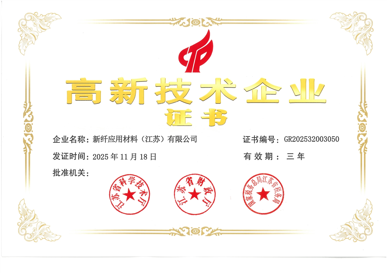 High-tech enterprise certificate